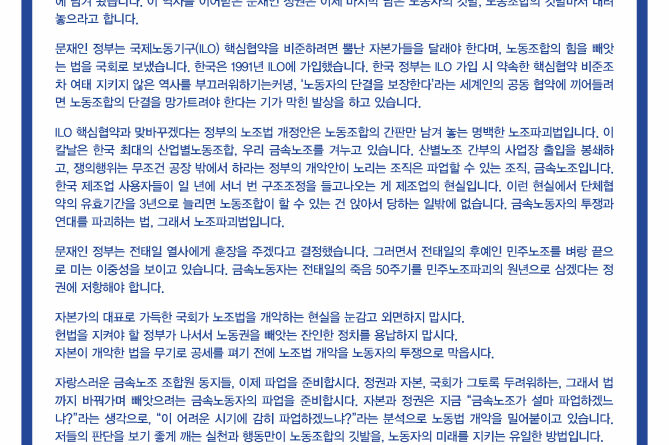[방침] 노조파괴법 저지 총파업 총력투쟁