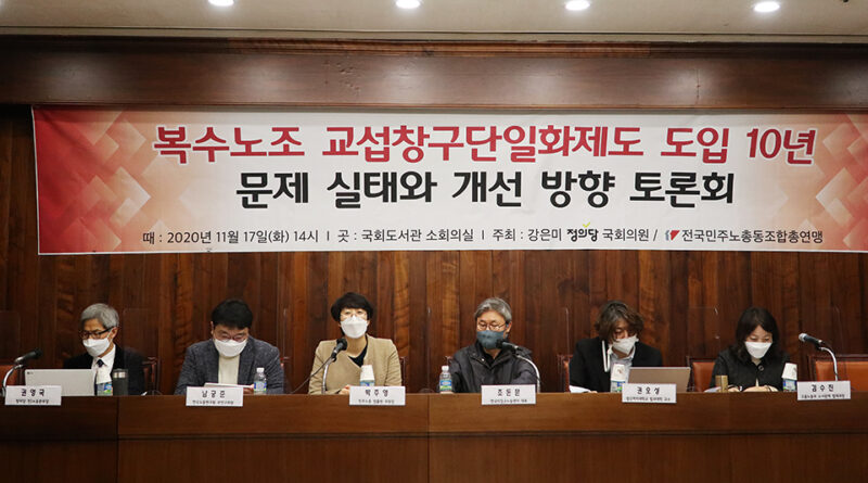 민주노총은 11월 17일 오후 국회에서 ‘복수노조 교섭창구단일화제도 도입 10년 문제 실태와 개선 방향 토론회’를 열었다. 금속노조 콘티넨탈지회, AVO카본코리아지회, 삼우기업지회, 효림산업분회 등 창구단일화 피해사업장 노동자들이 참석해 현장 목소리를 전달했다.