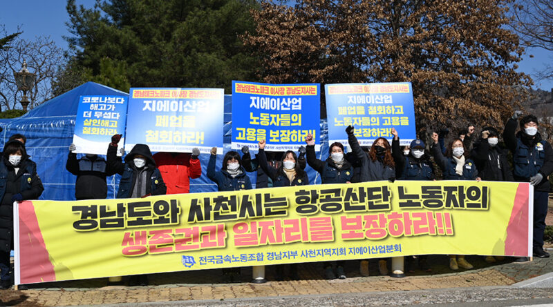 금속노조 경남지부 사천지역지회 지에이산업분회는 폐업 철회와 고용보장을 요구하며 2월 16일 경남도청 앞에서 무기한 천막농성에 돌입했다.